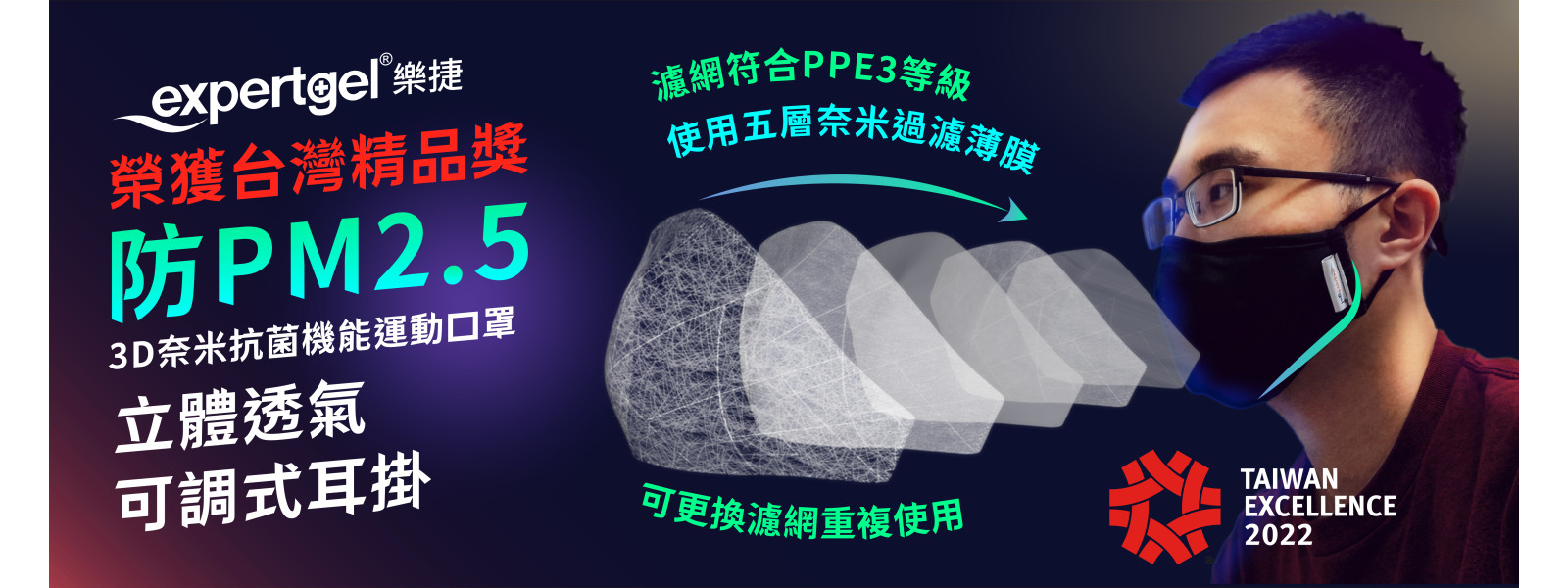 狂賀!! Expertgel 3D 立體奈米抗菌機能口罩 榮獲「台灣精品獎」!!